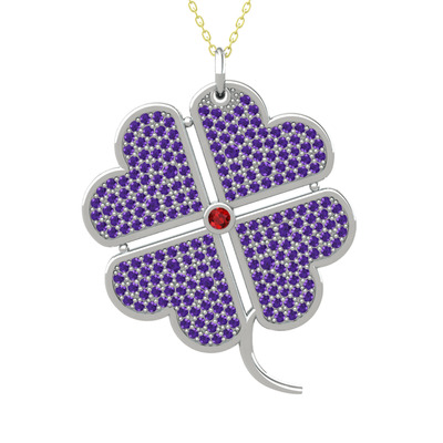 Garnet ve ametist 14 ayar beyaz altın kolye (40 cm altın rolo zincir)