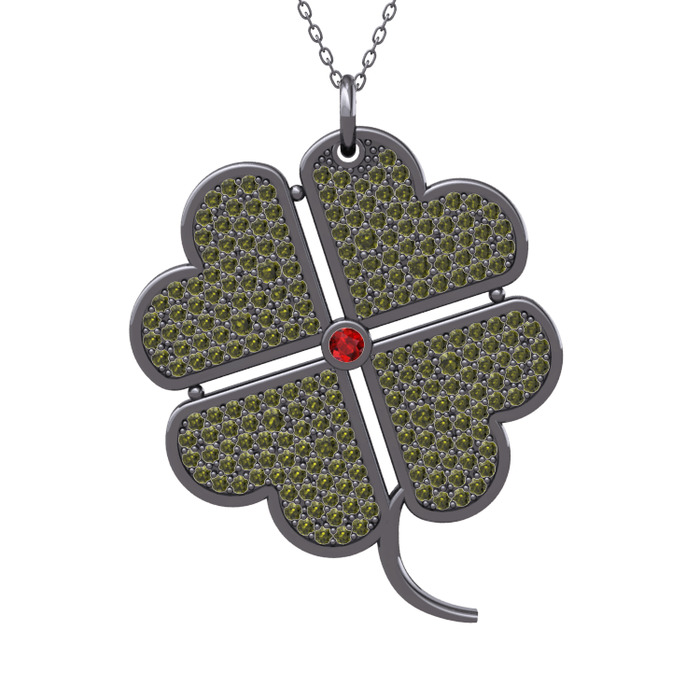 Garnet ve peridot 925 ayar siyah rodyum kaplama gümüş kolye (40 cm gümüş rolo zincir)