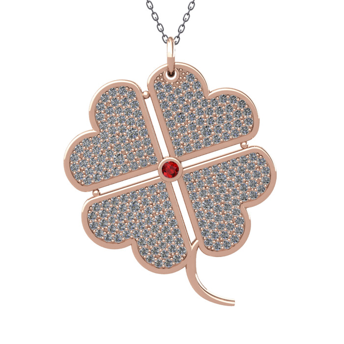 Garnet ve pırlanta 14 ayar rose altın kolye (3.3 karat, 40 cm gümüş rolo zincir)