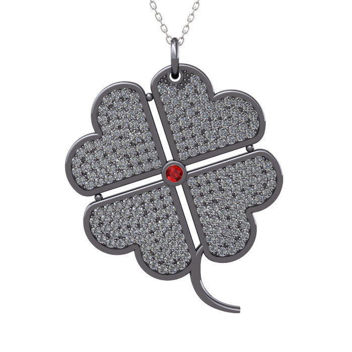 Garnet ve pırlanta 925 ayar siyah rodyum kaplama gümüş kolye (3.3 karat, 40 cm beyaz altın rolo zincir)