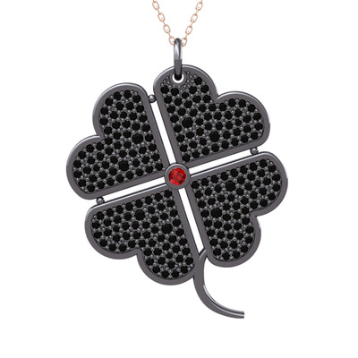 Garnet ve siyah zirkon 925 ayar siyah rodyum kaplama gümüş kolye (40 cm rose altın rolo zincir)