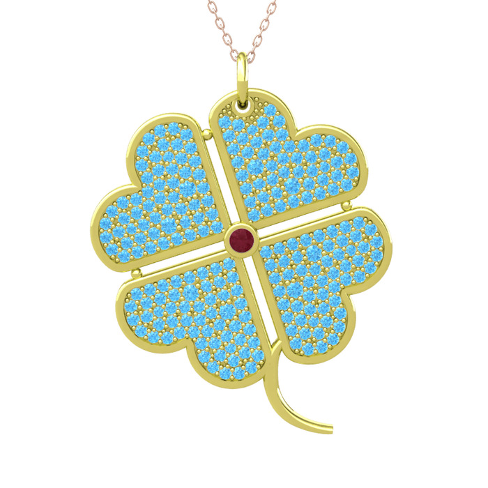 Kök yakut ve akuamarin 925 ayar altın kaplama gümüş kolye (40 cm gümüş rolo zincir)