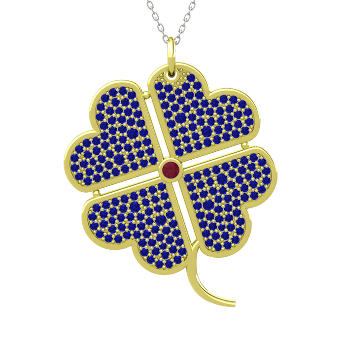 Kök yakut ve lab safir 925 ayar altın kaplama gümüş kolye (40 cm beyaz altın rolo zincir)