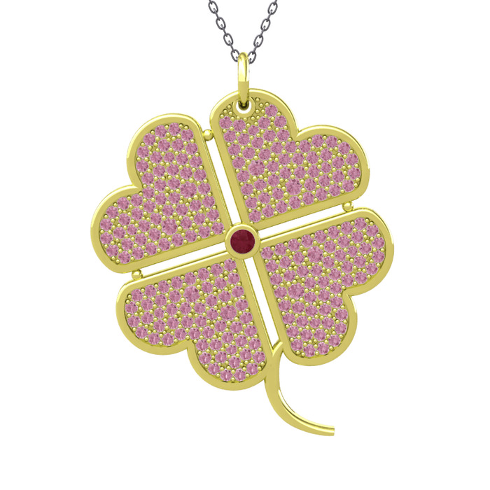 Kök yakut ve pembe kuvars 14 ayar altın kolye (40 cm gümüş rolo zincir)