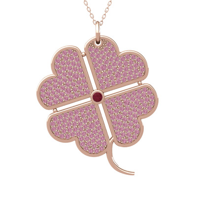 Kök yakut ve pembe kuvars 14 ayar rose altın kolye (40 cm rose altın rolo zincir)