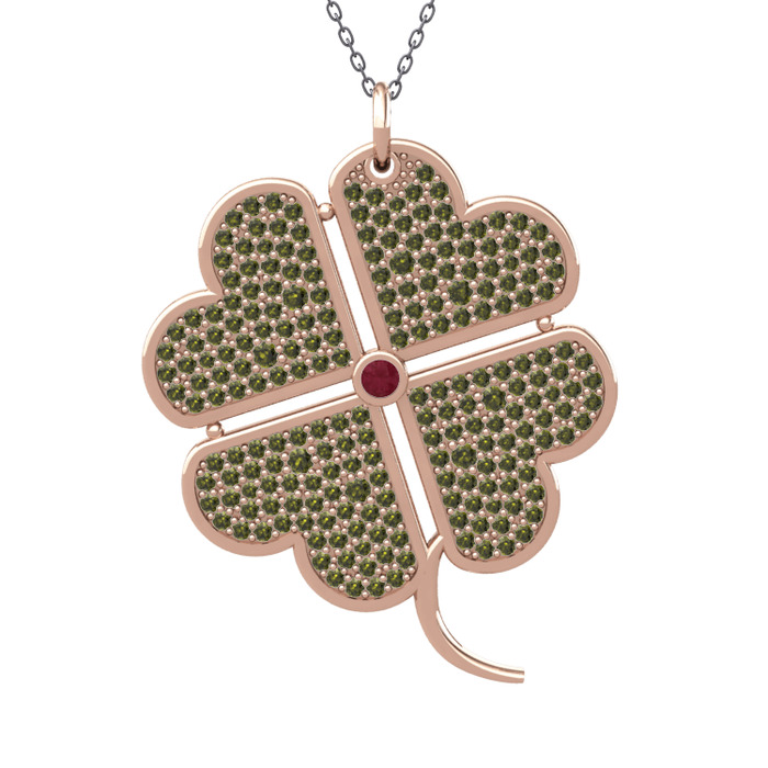 Kök yakut ve peridot 18 ayar rose altın kolye (40 cm gümüş rolo zincir)