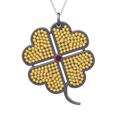 Kök yakut ve sitrin 925 ayar siyah rodyum kaplama gümüş kolye (40 cm beyaz altın rolo zincir)