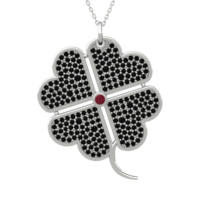 Kök yakut ve siyah zirkon 8 ayar beyaz altın kolye (40 cm beyaz altın rolo zincir)
