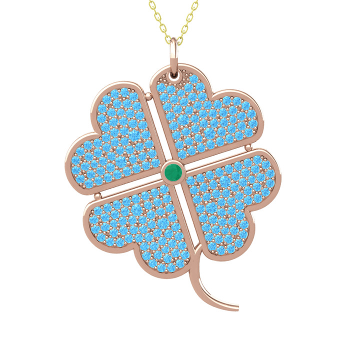 Kök zümrüt ve akuamarin 8 ayar rose altın kolye (40 cm altın rolo zincir)