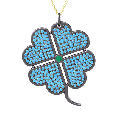 Kök zümrüt ve akuamarin 925 ayar siyah rodyum kaplama gümüş kolye (40 cm altın rolo zincir)