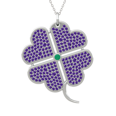 Kök zümrüt ve ametist 925 ayar gümüş kolye (40 cm gümüş rolo zincir)