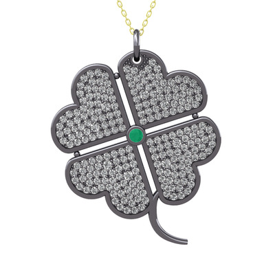 Kök zümrüt ve beyaz zirkon 925 ayar siyah rodyum kaplama gümüş kolye (40 cm gümüş rolo zincir)