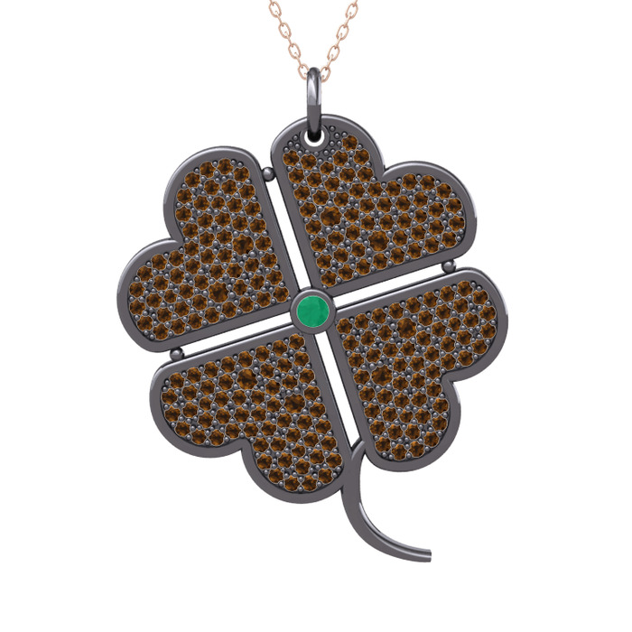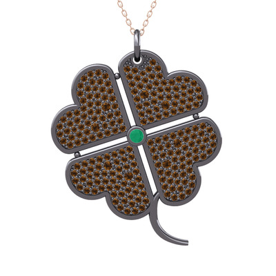 Kök zümrüt ve dumanlı kuvars 925 ayar siyah rodyum kaplama gümüş kolye (40 cm rose altın rolo zincir)