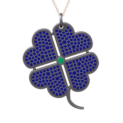 Kök zümrüt ve lab safir 925 ayar siyah rodyum kaplama gümüş kolye (40 cm rose altın rolo zincir)