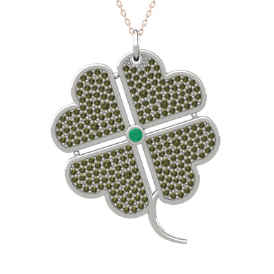 Kök zümrüt ve peridot 18 ayar beyaz altın kolye (40 cm gümüş rolo zincir)