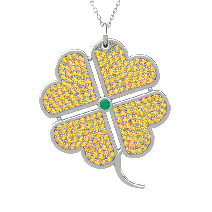 Kök zümrüt ve sitrin 14 ayar beyaz altın kolye (40 cm gümüş rolo zincir)