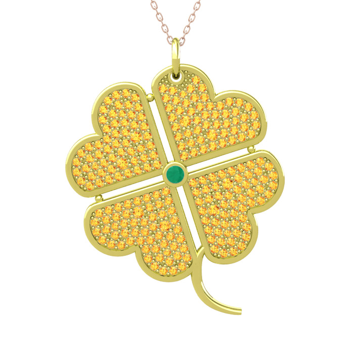 Kök zümrüt ve sitrin 8 ayar altın kolye (40 cm rose altın rolo zincir)