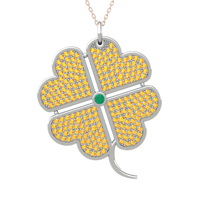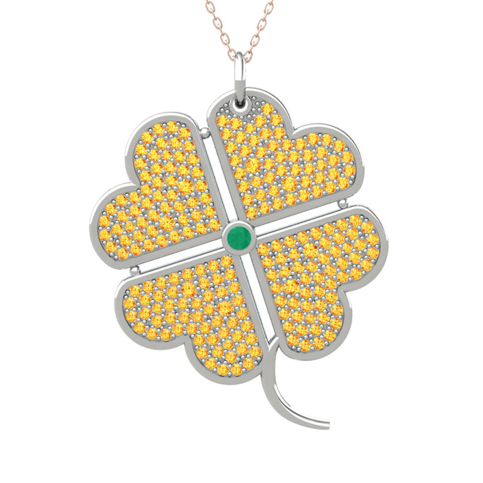 Kök zümrüt ve sitrin 8 ayar beyaz altın kolye (40 cm rose altın rolo zincir)