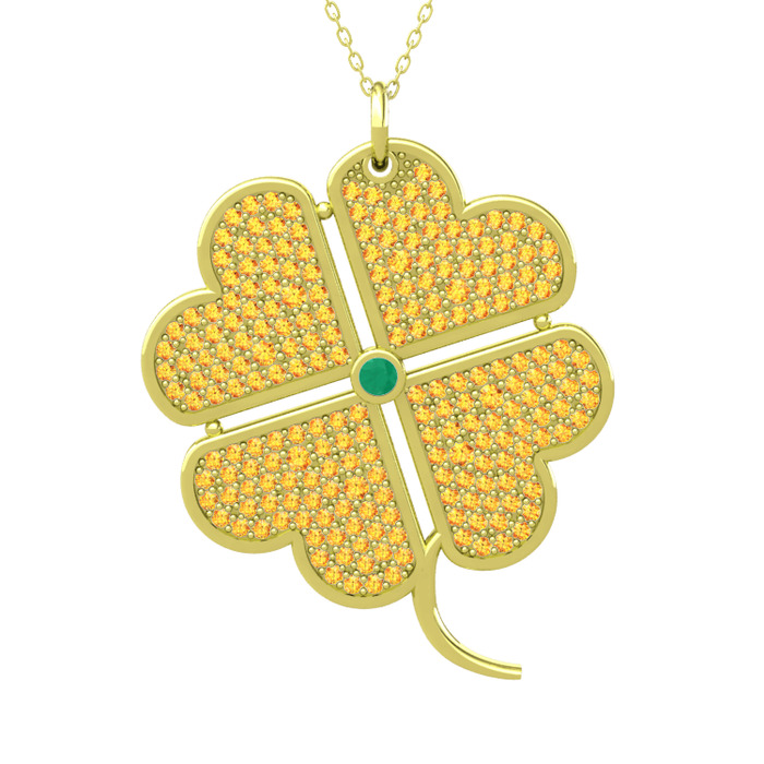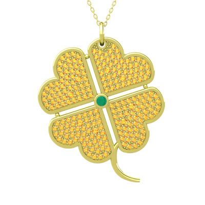 Kök zümrüt ve sitrin 925 ayar altın kaplama gümüş kolye (40 cm altın rolo zincir)