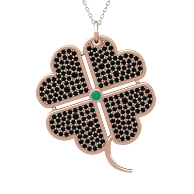 Kök zümrüt ve siyah zirkon 925 ayar rose altın kaplama gümüş kolye (40 cm beyaz altın rolo zincir)