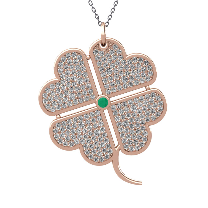 Kök zümrüt ve swarovski 8 ayar rose altın kolye (40 cm gümüş rolo zincir)