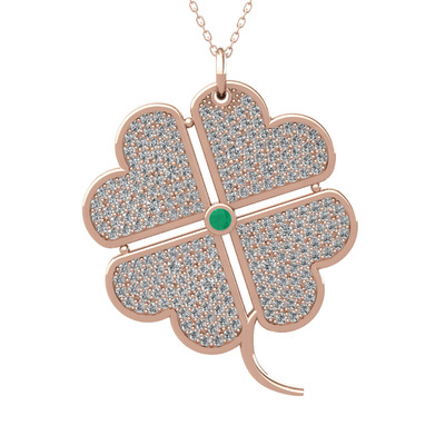 Kök zümrüt ve swarovski 925 ayar rose altın kaplama gümüş kolye (40 cm rose altın rolo zincir)