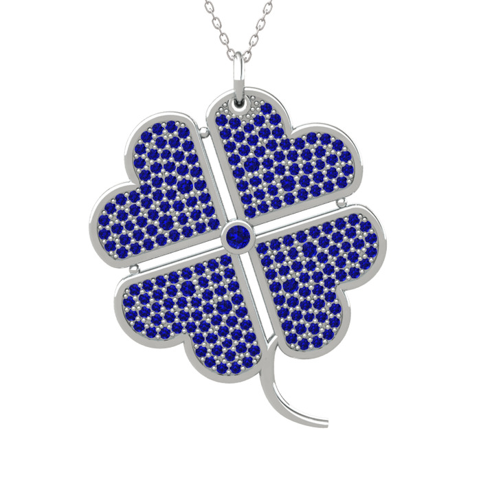 Lab safir 18 ayar beyaz altın kolye (40 cm beyaz altın rolo zincir)
