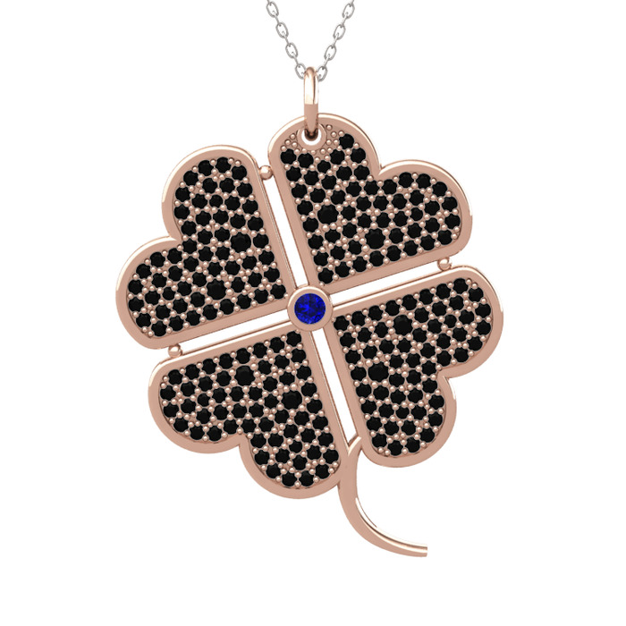 Lab safir ve siyah zirkon 18 ayar rose altın kolye (40 cm gümüş rolo zincir)