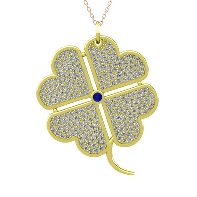 Lab safir ve swarovski 8 ayar altın kolye (40 cm rose altın rolo zincir)