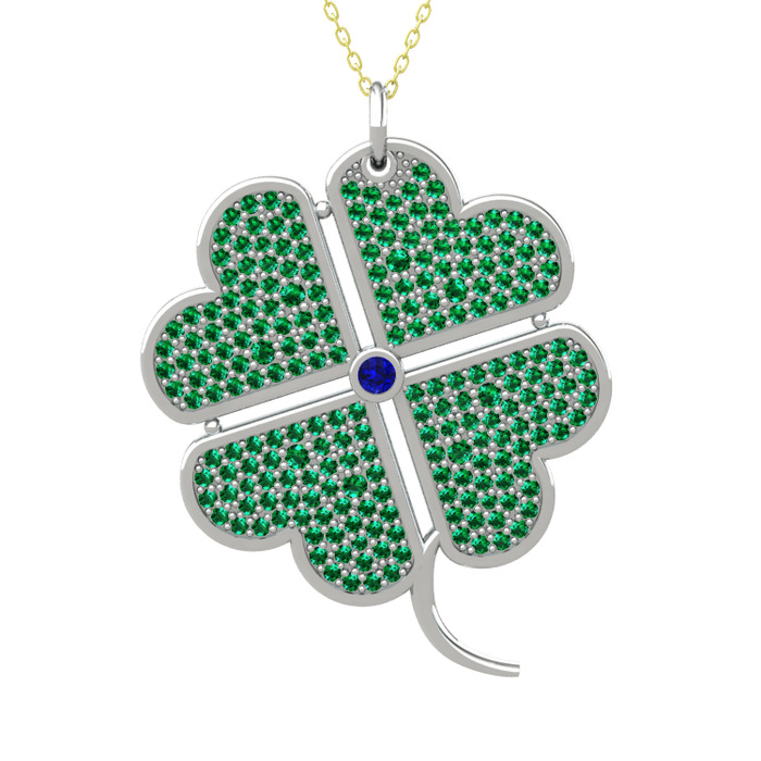 Lab safir ve yeşil kuvars 925 ayar gümüş kolye (40 cm gümüş rolo zincir)