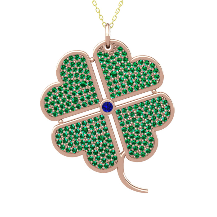 Lab safir ve yeşil kuvars 925 ayar rose altın kaplama gümüş kolye (40 cm gümüş rolo zincir)