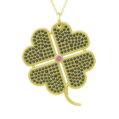 Pembe kuvars ve peridot 8 ayar altın kolye (40 cm altın rolo zincir)