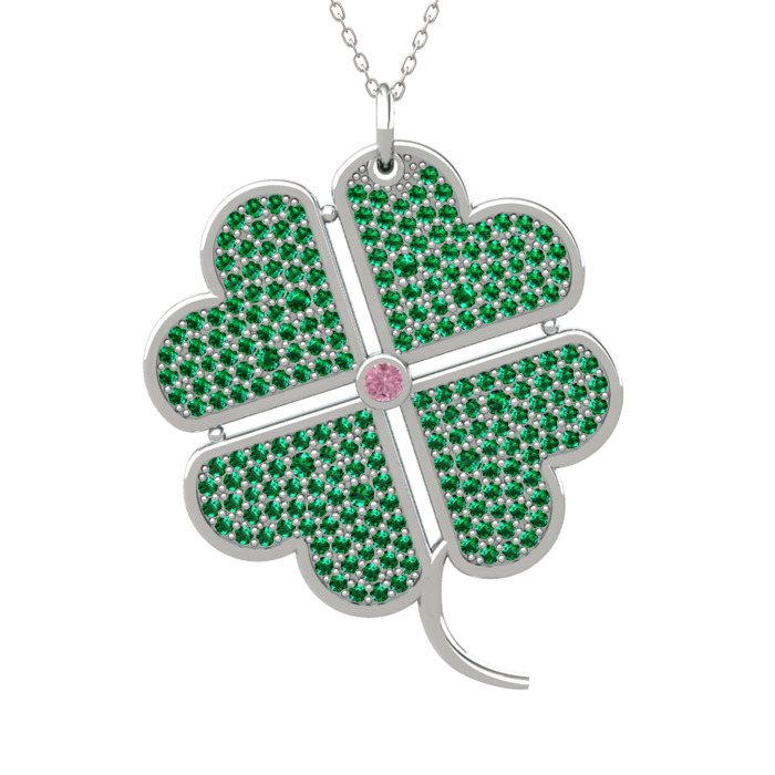 Pembe kuvars ve yeşil kuvars 14 ayar beyaz altın kolye (40 cm beyaz altın rolo zincir)