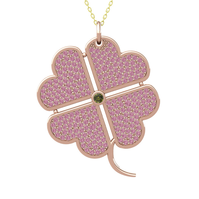 Peridot ve pembe kuvars 8 ayar rose altın kolye (40 cm altın rolo zincir)