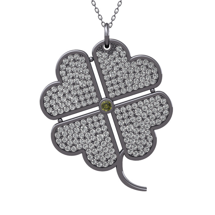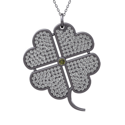 Peridot ve swarovski 925 ayar siyah rodyum kaplama gümüş kolye (40 cm gümüş rolo zincir)