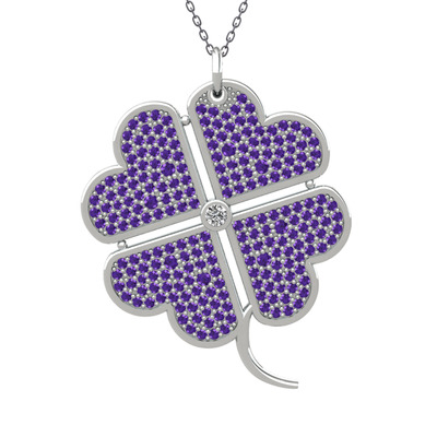 Pırlanta ve ametist 925 ayar gümüş kolye (0.11 karat, 40 cm gümüş rolo zincir)