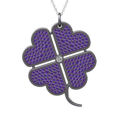 Pırlanta ve ametist 925 ayar siyah rodyum kaplama gümüş kolye (0.11 karat, 40 cm beyaz altın rolo zincir)