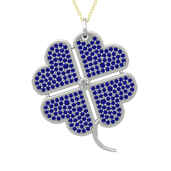 Pırlanta ve lab safir 8 ayar beyaz altın kolye (0.11 karat, 40 cm altın rolo zincir)