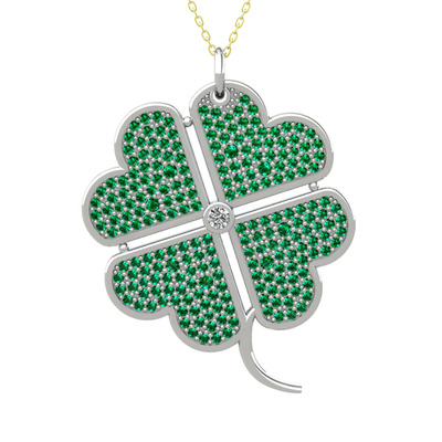 Pırlanta ve yeşil kuvars 18 ayar beyaz altın kolye (0.11 karat, 40 cm altın rolo zincir)