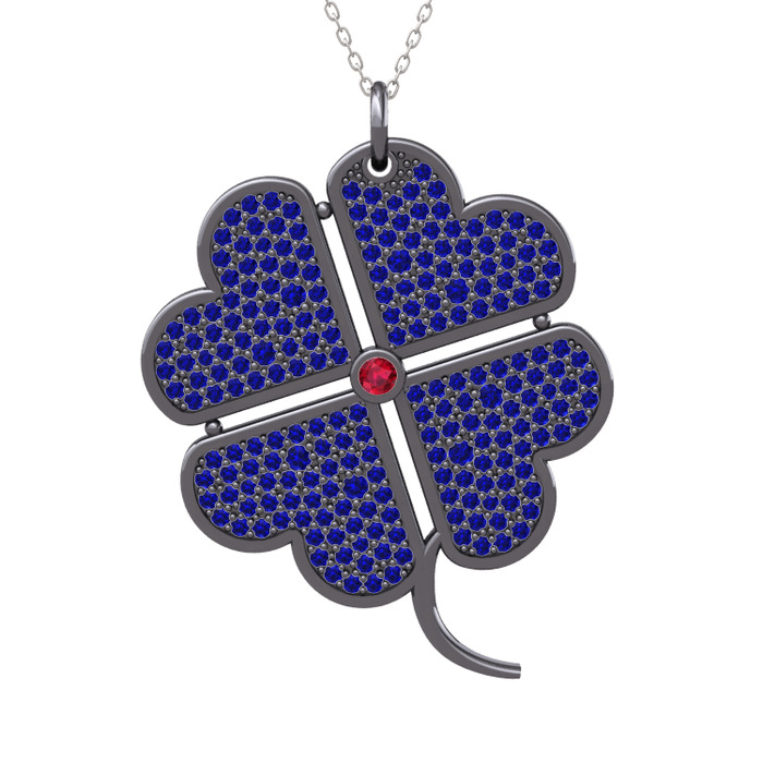 Rodolit garnet ve lab safir 925 ayar siyah rodyum kaplama gümüş kolye (40 cm beyaz altın rolo zincir)