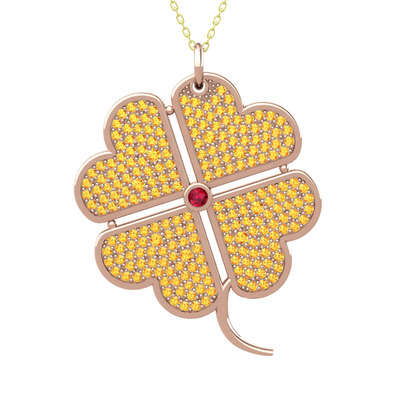 Rodolit garnet ve sitrin 8 ayar rose altın kolye (40 cm altın rolo zincir)