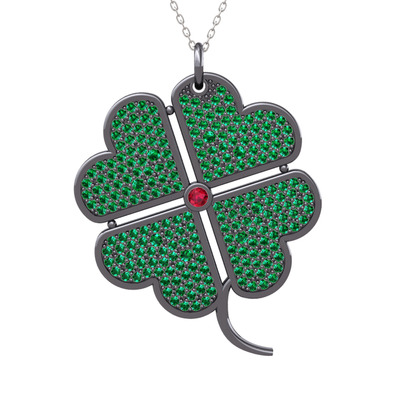 Rodolit garnet ve yeşil kuvars 925 ayar siyah rodyum kaplama gümüş kolye (40 cm beyaz altın rolo zincir)