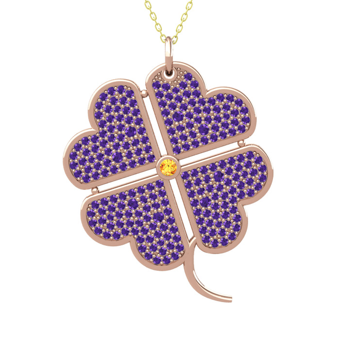 Sitrin ve ametist 14 ayar rose altın kolye (40 cm altın rolo zincir)