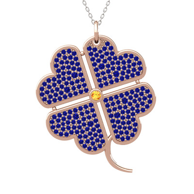 Sitrin ve lab safir 8 ayar rose altın kolye (40 cm beyaz altın rolo zincir)