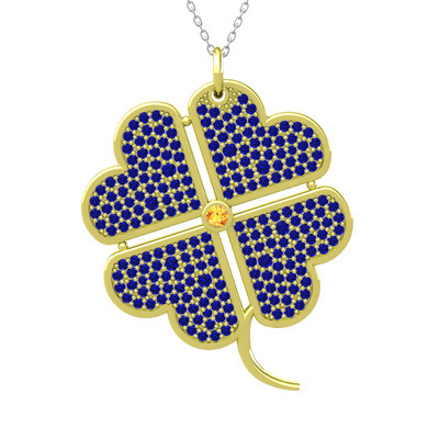 Sitrin ve lab safir 925 ayar altın kaplama gümüş kolye (40 cm beyaz altın rolo zincir)