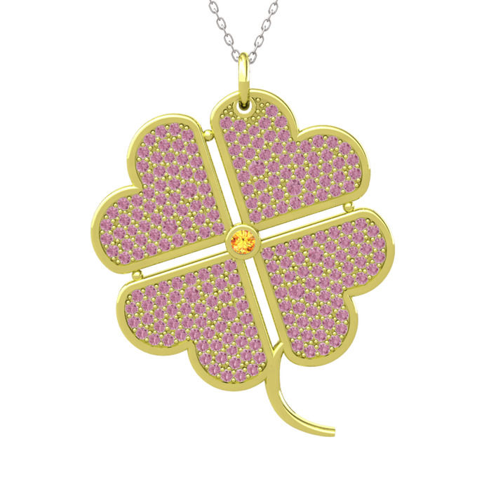 Sitrin ve pembe kuvars 925 ayar altın kaplama gümüş kolye (40 cm beyaz altın rolo zincir)