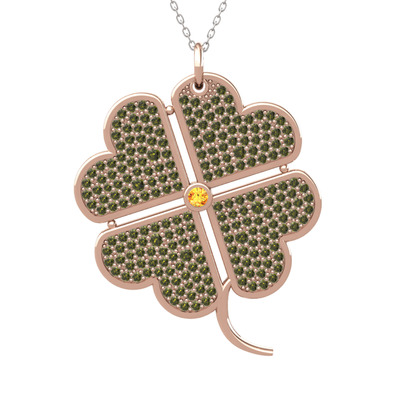 Sitrin ve peridot 14 ayar rose altın kolye (40 cm gümüş rolo zincir)