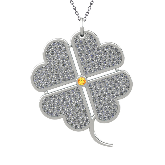 Sitrin ve pırlanta 18 ayar beyaz altın kolye (3.3 karat, 40 cm gümüş rolo zincir)