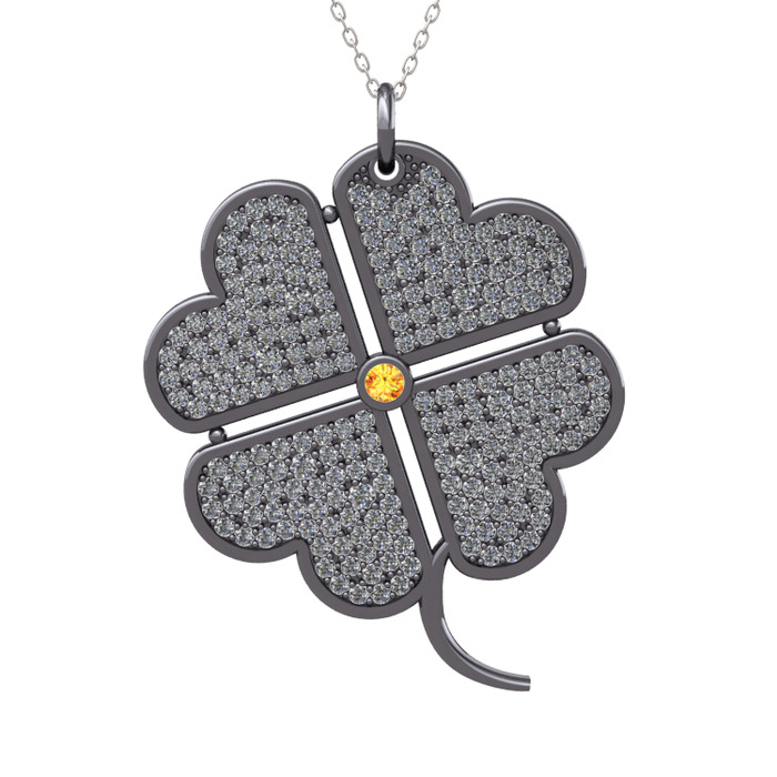 Sitrin ve pırlanta 925 ayar siyah rodyum kaplama gümüş kolye (3.3 karat, 40 cm beyaz altın rolo zincir)