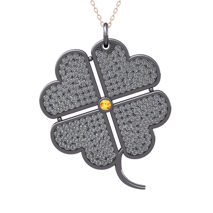 Sitrin ve pırlanta 925 ayar siyah rodyum kaplama gümüş kolye (3.3 karat, 40 cm gümüş rolo zincir)